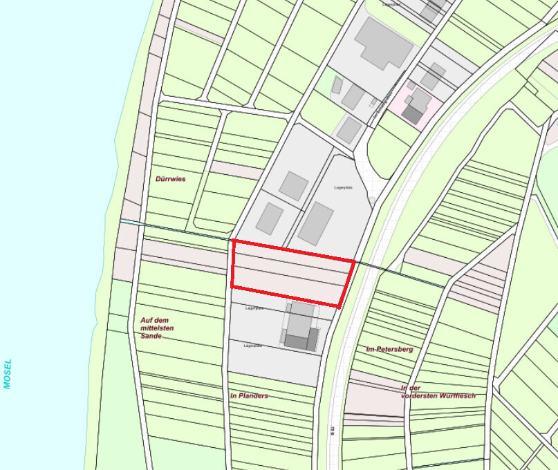 Verkauft wird dieses ca. 4.220 m² große und voll erschlossene Baugrundstück im Gewerbegebiet von Pünderich, ist ca. 41 m breit und ca. 103 m lang und befindet sich am Ufer der schönen Mosel.