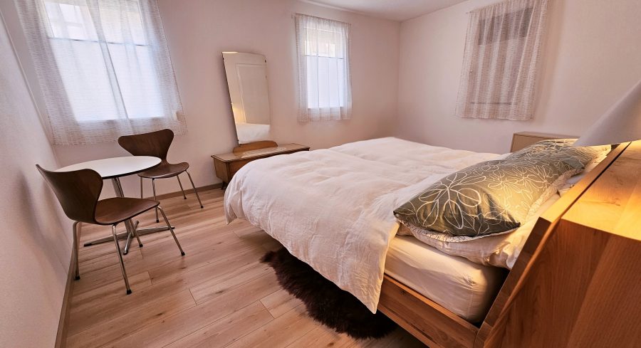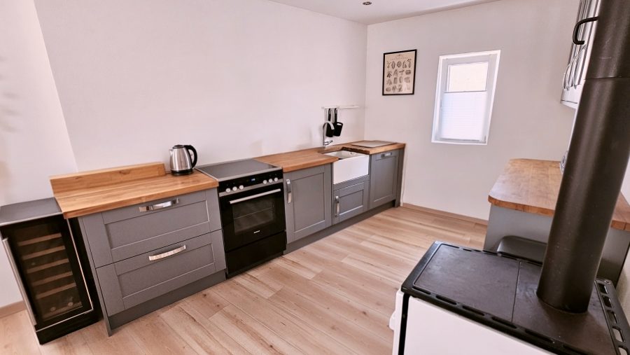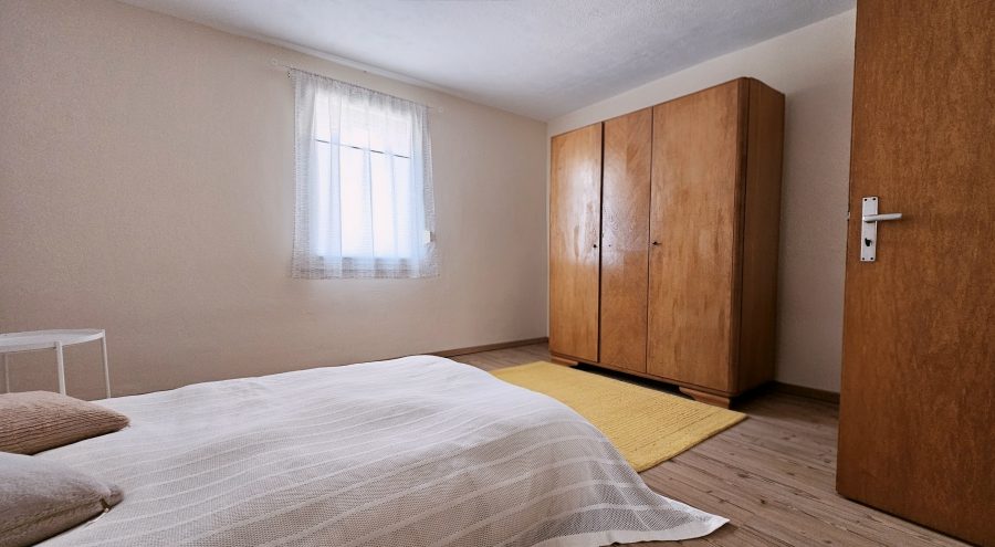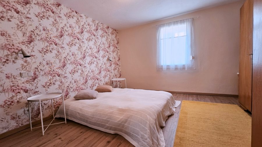 Das Erdgeschoss punktet schon beim Eintreten ins Haus durch den schönen alten Fliesenboden, ein Detail aus der "alten" Zeit. Eine geräumige Küche mit Essbereich und altem Herd, auf dem noch immer gekocht werden kann, sowie ein Wohnzimmer mit Ofen und ein weiteres Zimmer befinden sich auf dieser Ebene.