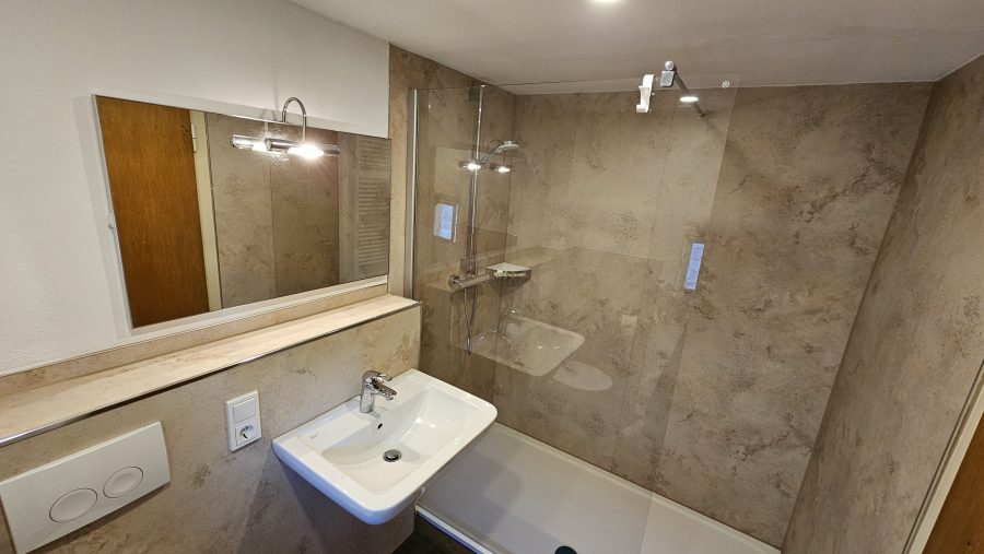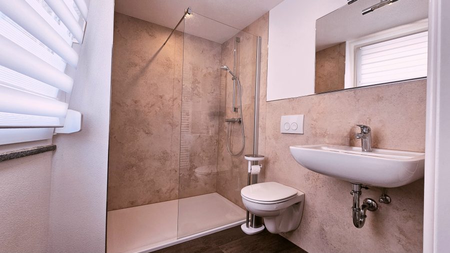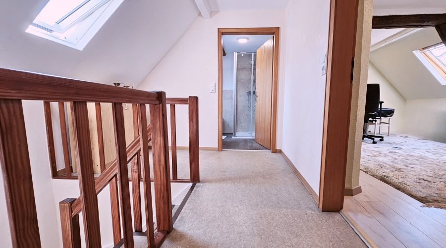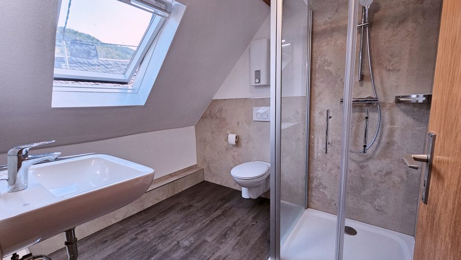 Zwei weitere Geschosse warten mit jeweils zwei Schlafzimmern auf. Im ersten Obergeschoss ist eines der neu modernisierten Duschbäder vom Flur aus zugänglich, bei dem zweiten Bad handelt es sich um ein Bad en suite. Im zweiten Obergeschoss befindet sich das dritte Badezimmer, auch dieses ist neu, alle wurden durch eine Fachfirma erneuert.