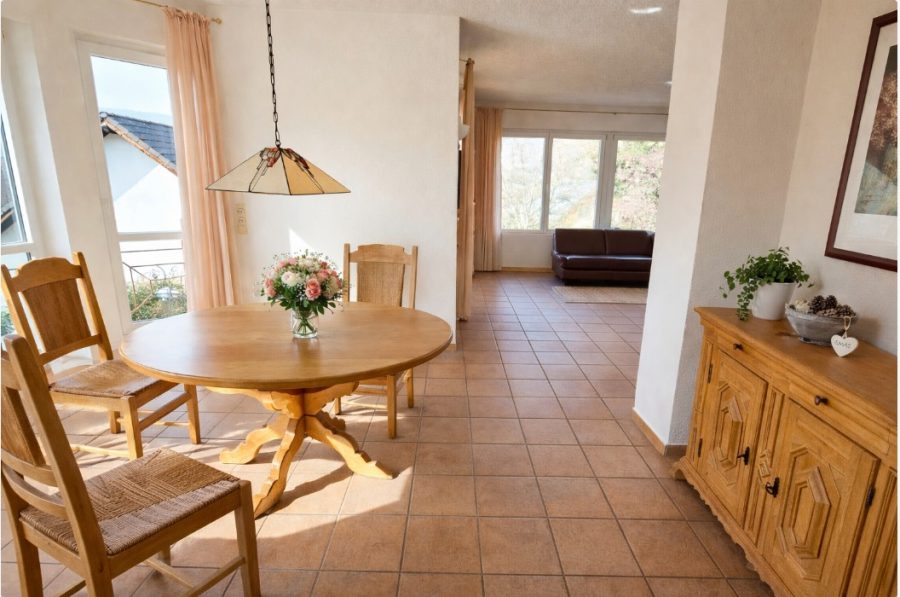 Diese Immobilie in sonniger Lage von Bullay heißt den Eintretenden auf das Herzlichste Willkommen. Gut durchdacht präsentiert sich das in Massivbauweise 1999 erbaute Haus, praktisch gestaltet, ohne auf Komfort zu verzichten. Die Möglichkeit einer weiteren Wohneinheit mit einbezogen, bietet das Haus helle Räume, Wohnen auf einer Ebene und schöne Ausblicke aus fast allen Fenstern.