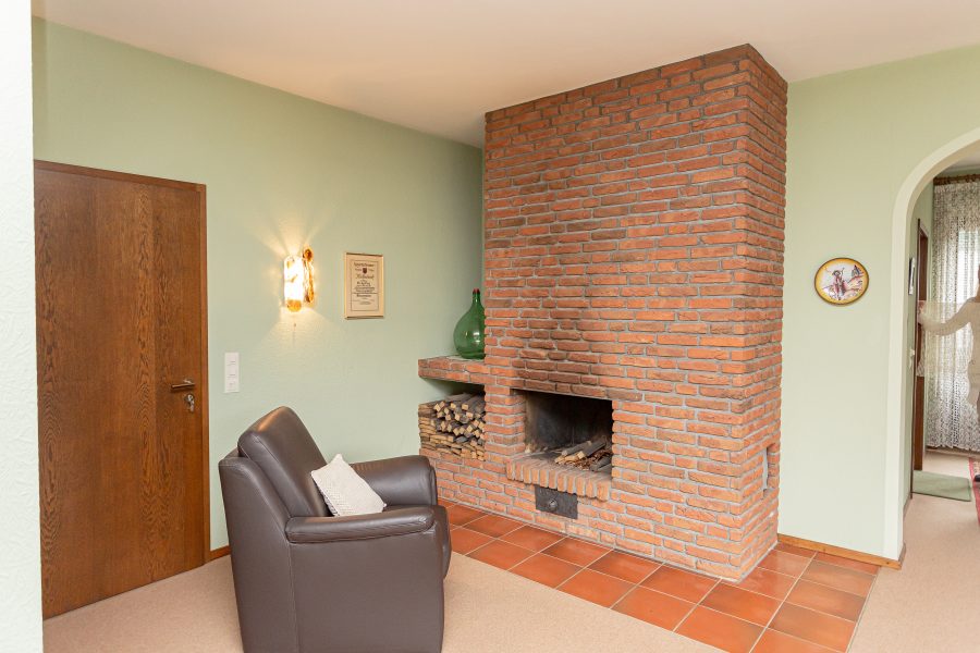 Das Wohnhaus selbst ist aufgrund der großen Fenster lichtdurchflutet und hat eine großzügige Aufteilung. Von den Treppenstufen, die zur Eingangstür führen, abgesehen, ist der gesamte Wohnbereich auf einer Ebene. Früher wohnten hier nicht nur die Winzer, sondern haben auch Ihren Angestellten Schlafräume zur Verfügung gestellt. Es verfügt somit derzeit über 4 Schlafzimmer mit angrenzenden Bädern, sowie einer sehr großen Küche mit Sitz- bzw. Essgelegenheit. Die Küche ist über den Flur und über das Wohnzimmer begehbar. Blickfang des Wohnzimmers ist sicher der große Kamin und auch hier fällt einem direkt auf, wie hell sich der große Raum gestaltet. Auch die Qualität der Einrichtung bezogen auf die Fliesen, Teppichböden, die Miele-Einbauküche sprechen für die Wertschätzung der Immobilie seitens der Eigentümer. Die dunklen Holztüren und die Echtholztreppe mit dem geschwungenen handgefertigten Geländer sind weitere Qualitätsmerkmale, die zeigen, dass es sich bei diesem Objekt Innen wie Außen um ein Haus von guter Substanz handelt, welches stets gepflegt wurde. Natürlich sind die Küche und 3 der Bäder in die Jahre gekommen, doch ginge es hier nicht um die Sanierung, sondern lediglich um die Verschönerung der Zimmer nach eigenem Geschmack. Ein Badezimmer wurde bereits 2016 renoviert und verfügt über eine barrierefreie Dusche. Ein Büro, ein Hauswirtschaftsraum und ein Gäste-WC ergänzen den Wohnbereich.