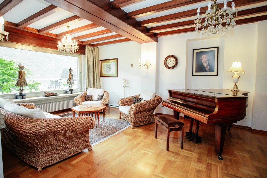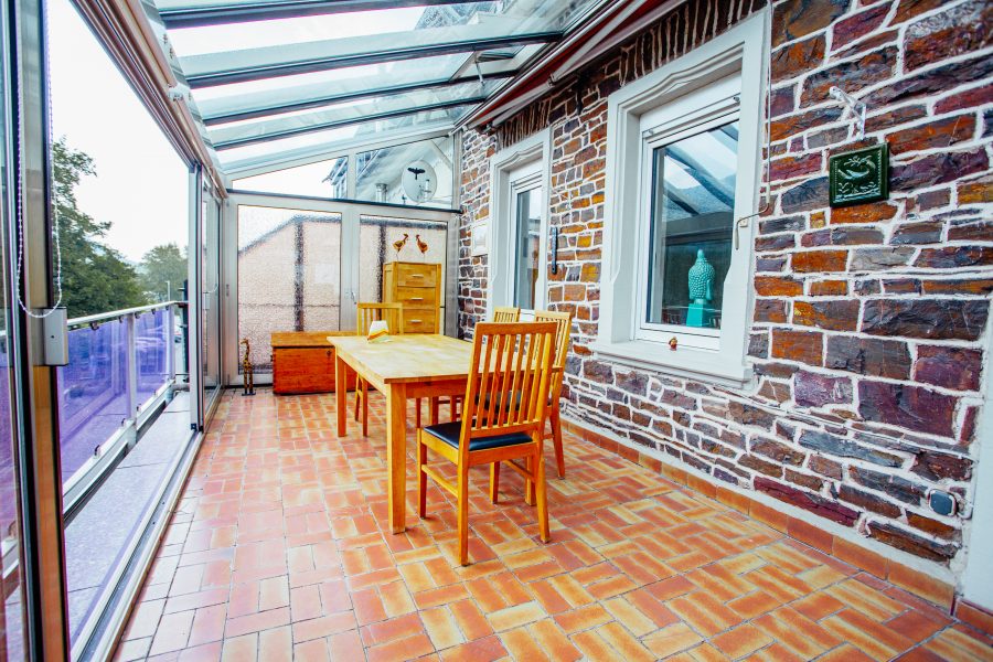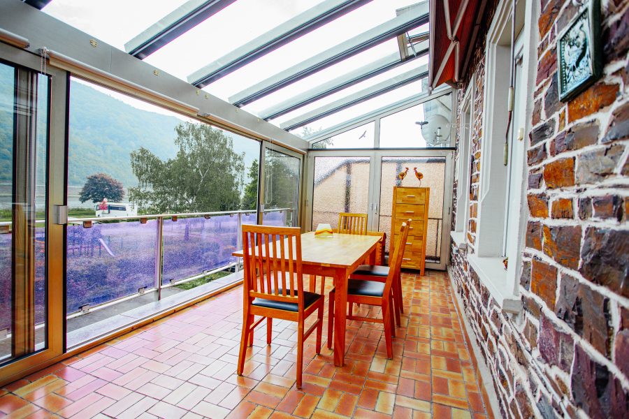 Im 1. Obergeschoss haben wir ebenfalls ein Wohnzimmer mit angrenzendem Wintergarten, eine schöne Küche mit Abstellraum, ein Gäste-WC, sowie ein schönes frisch renoviertes Bad. Das Schlafzimmer bietet neben viel Platz auch einen schönen Blick auf die Mosel. Der Wintergarten könnte aufgrund seiner Größe als "Sommer-Wohnzimmer" dienen.