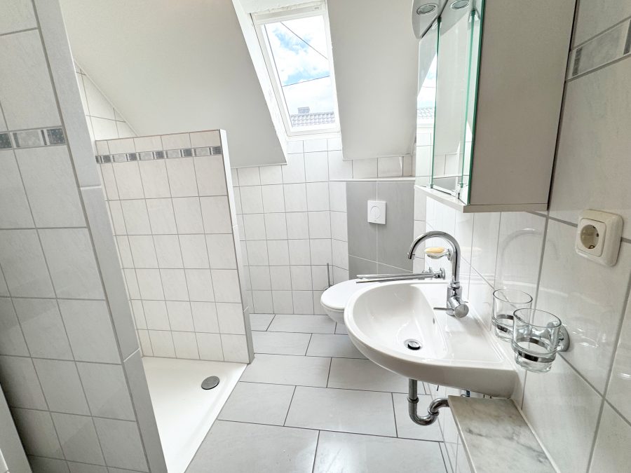 - Badezimmer mit Dusche und Waschmaschinenanschluss