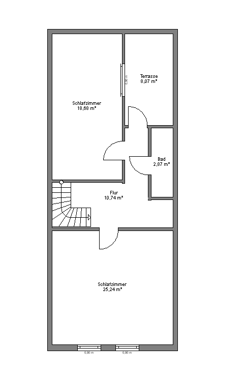 Im zweiten Obergeschoss erwarten den Interessenten zwei sehr geräumige Schlafzimmer und ein Badezimmer mit Dusche und Badewanne. Die Terrasse liegt rückseitig des Hauses, ruhig und geschützt gelegen.