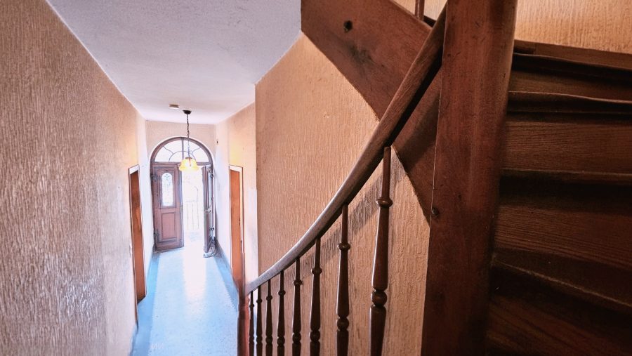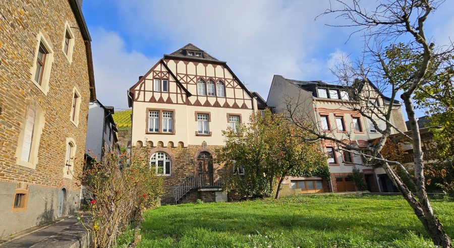 Diese Immobilie fällt ins Auge! 1903 erbaut, glänzt dieses Haus mit seinem schönen Fachwerk und der Bruchsteinfassade, sowie großem Garten vor dem Haus. Nur durch die Durchgangsstraße von der Mosel entfernt, im schönen Zell-Merl gelegen, eignet sich diese Immobilie perfekt für die Familie. Großzügig geschnittene Räume, hohe Decken, sowie eine praktische Anordnung der Zimmer überzeugen hier. Elemente aus dem Baujahr sind noch vorhanden und verleihen dem Inneren des Gebäudes seinen ureigenen Charme. Zudem verfügt das Objekt über eine große Garage, die frühere Scheune, in der ganz bequem zwei Autos Platz finden. Es besteht ein direkter Zugang ins Haus.