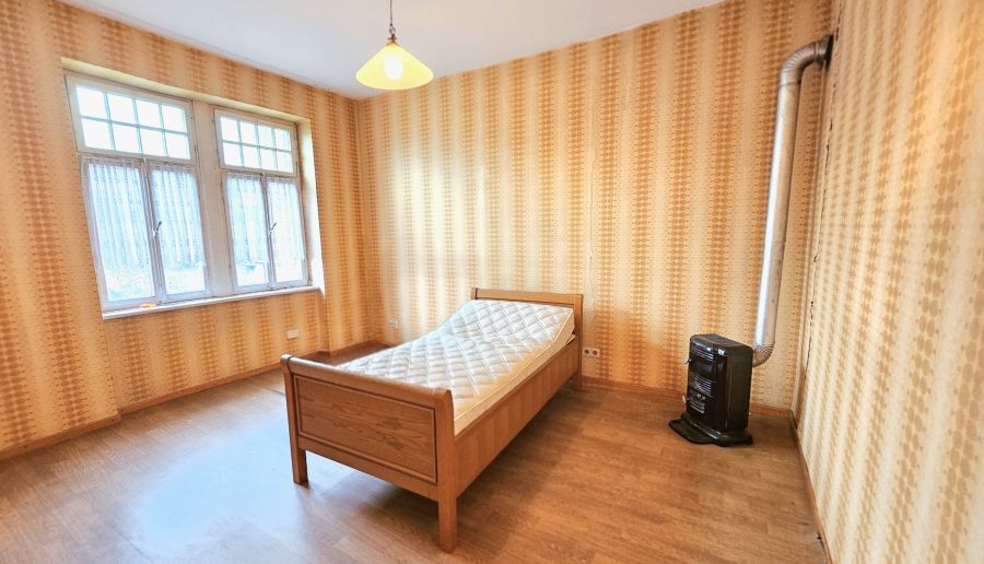 Das Obergeschoss stellt sich mit seinen insgesamt 4 Zimmern, hier könnten drei Schlafzimmer und ein Büro eingerichtet werden, ebenfalls großzügig dar. Ein weiteres Geschoss könnte gegebenenfalls bei Bedarf noch ausgebaut werden. In früheren Zeiten dienten zwei bereits vorhandene Zimmer als Schlafzimmer, die Gesamtfläche des 2. Obergeschosses lässt aber noch weitere Abtrennungen zu.