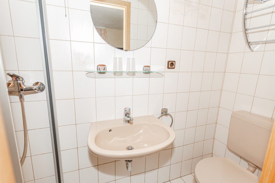 Die Aufteilung gestaltet sich recht klassisch, so befinden sich der Wohnbereich nebst Badezimmer und Küche im Erdgeschoss, die Schlafräume sind im oberen Stockwerk untergebracht.