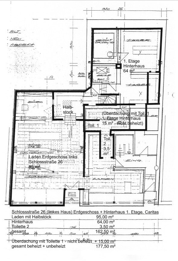 Hintergebäude “Ela´s Laden“ mit zusätzlicher Ladenfläche, mit Ausgang zu Dachterrasse und Garagen