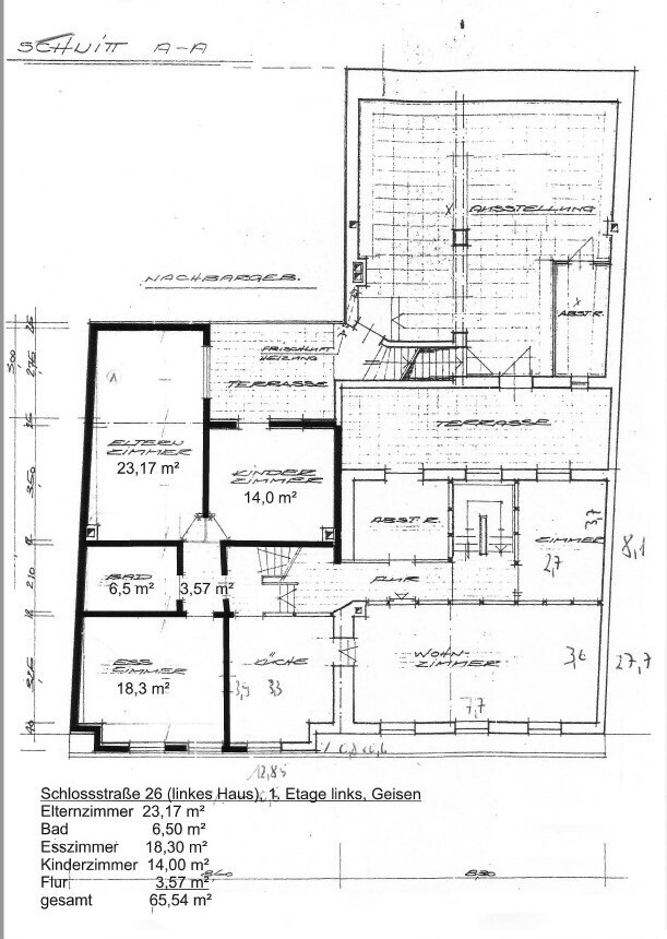 Es handelt sich hier um zwei Mehrfamilienhäuser mit Gewerbeflächen in attraktiver Lage von Zell in der Schlossstraße plus Hintergebäude in der Jakobstraße mit einer Gesamtfläche von 550 m². Haus Nr. 24 wurde in 1920 erbaut und Nr. 26 in 1950. Beide Häuser wurden im Laufe der Jahre überwiegend modernisiert und befinden sich aktuell in einem gepflegten Zustand. Wasserleitungen wurden seit 2000 und Elektrik seit 2010 nach und nach erneuert. Letztes Jahr wurden fast alle Fenster in