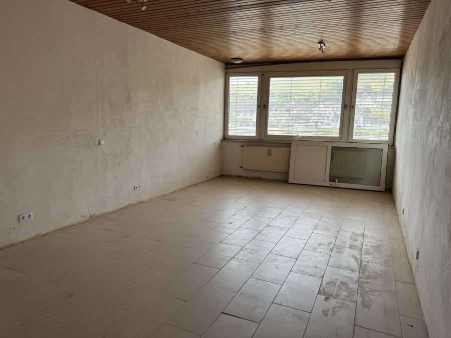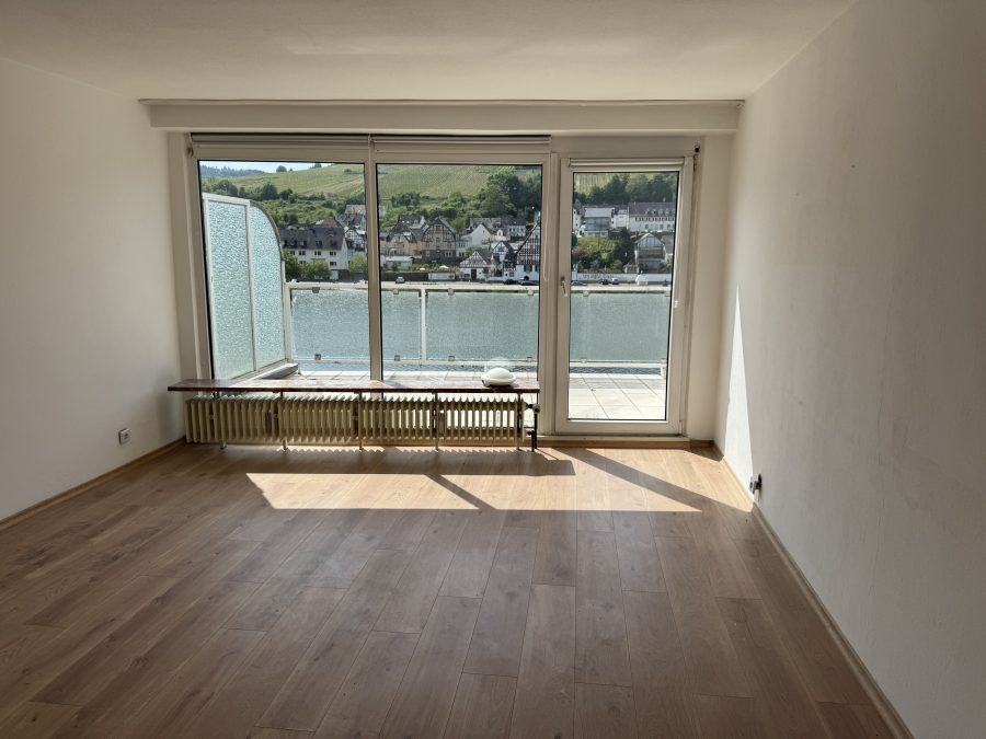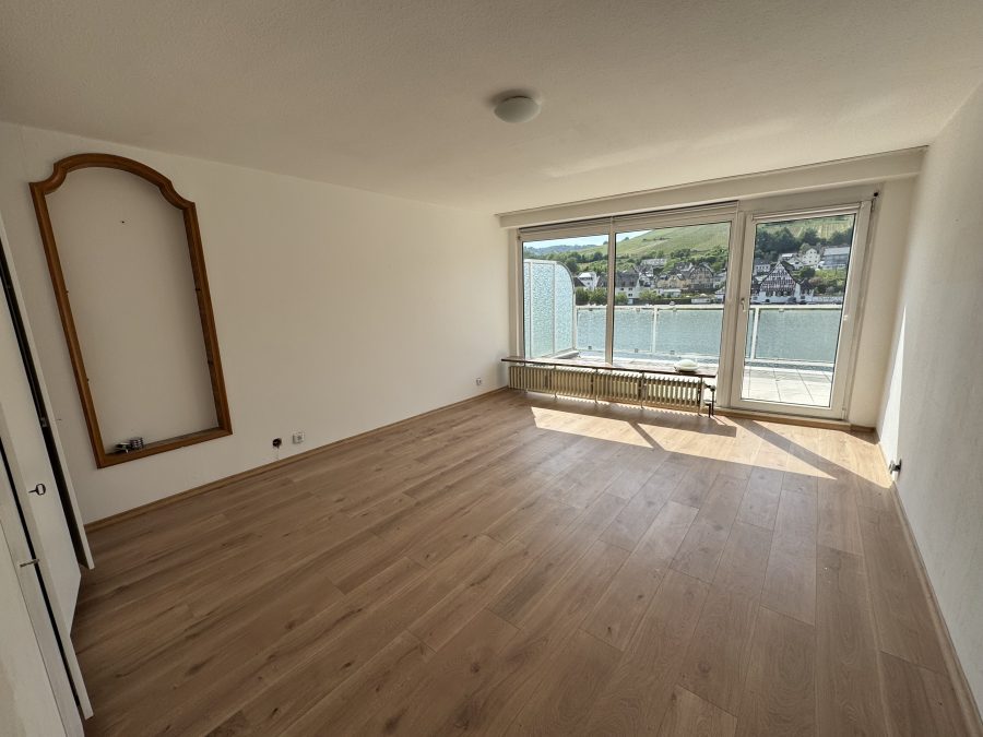 Hier haben wir ein weiteres Zimmer, welches gut als Schlafzimmer genutzt werden könnte, ein vollwertiges Bad, ein großes Zimmer mit einer Terrasse mit Moselblick.